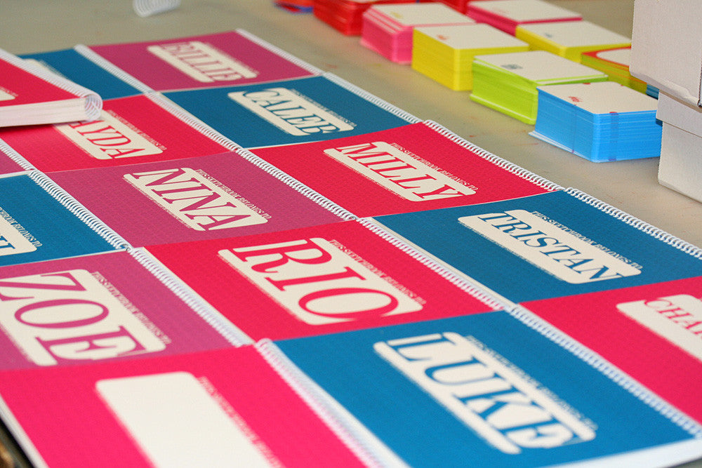 Our first custom birthday book set for Anna who is celebrating her 4th birthday. We created an abstract 'Anna' as a graphic pattern for all the covers