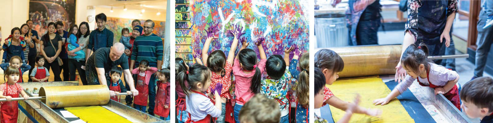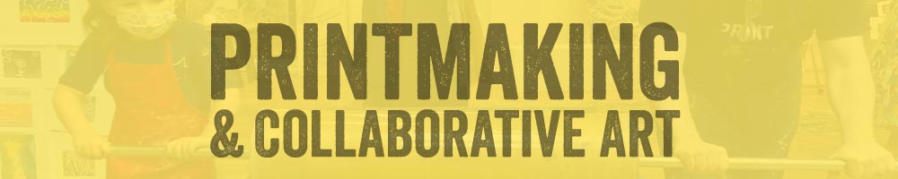 The process of art we create here is called Printmaking. Everyone will make their own series of prints on paper, using the various tools & techniques that we teach and all get to run our kid-friendly printing press. It’s a very hands-on, high energy creative time where the entire family (parents, grandparents, aunts/uncles) and friends all create.