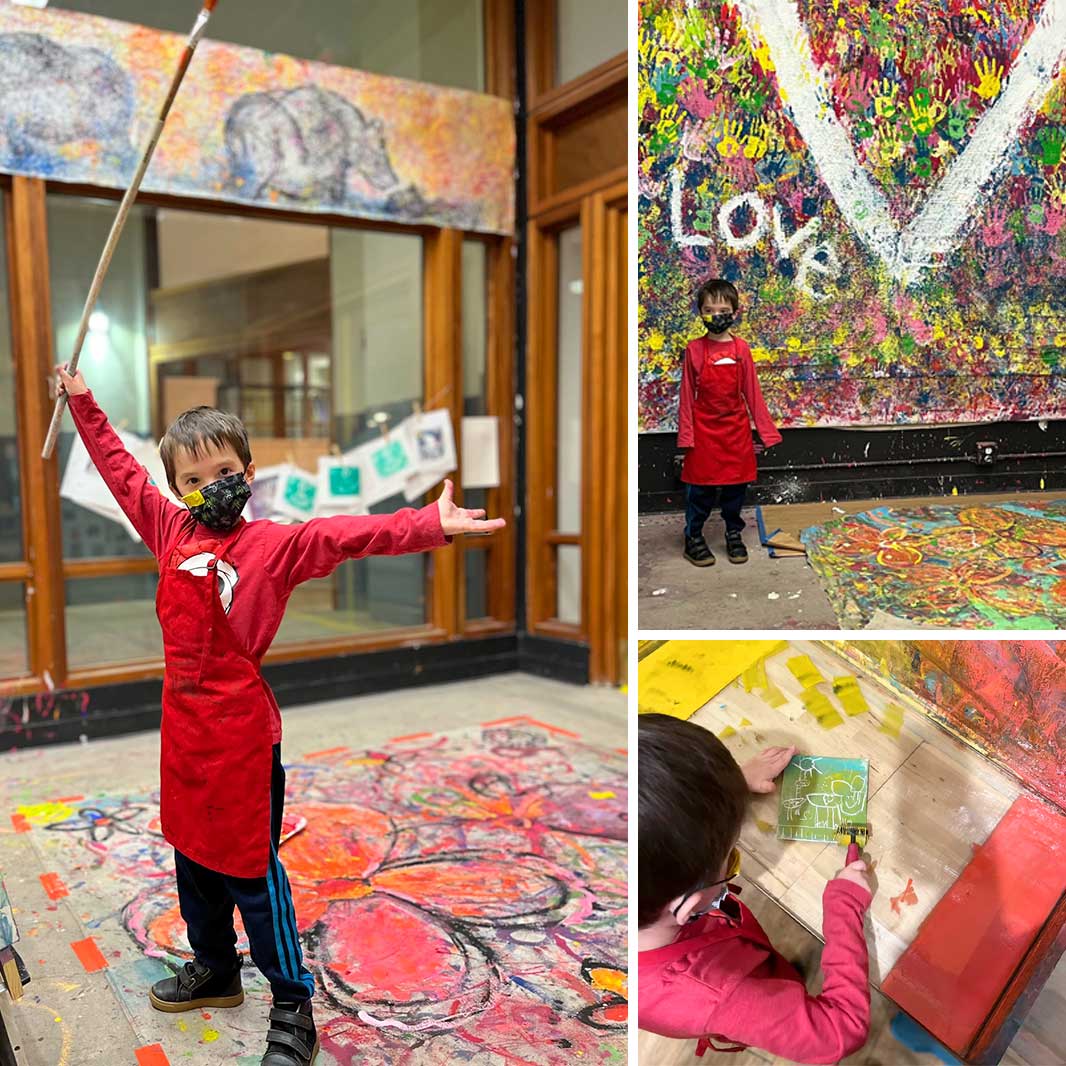 When my son Luke was in art class as a baby, I remember sitting off to the side watching him and wanting to create some stuff too. I told myself: “If I ever start my own art studio for kids, I’m gonna make it so that the adults can do the art too, to give kids and their adults an intimate few hours together, using their imaginations and creating together”.