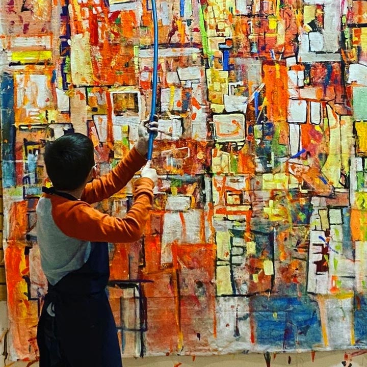 Each student creates his/her own series of prints, operating our kid-friendly printing press. We discuss art history and color theory in a light and humorous way. The focus is on drawing and using their imagination to come up with their own ideas.n In addition to the printmaking, we also work on large-scale paintings and mixed-media pieces throughout our new studio.
