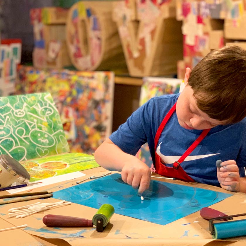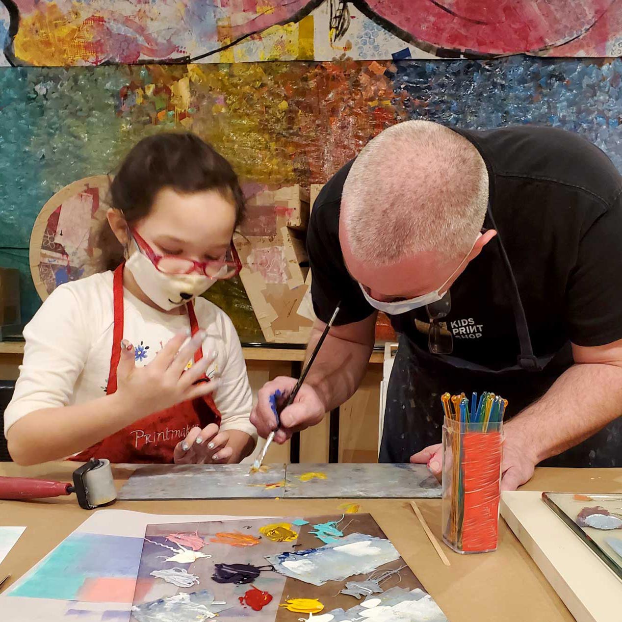 Get your hands on our kid-friendly printing press and whip up some seriously cool prints (using ink and paper). We'll be your trusty guides, showing you all the tools & techniques. It's a wild ride and an epic mess - you and your child will have an absolute blast!